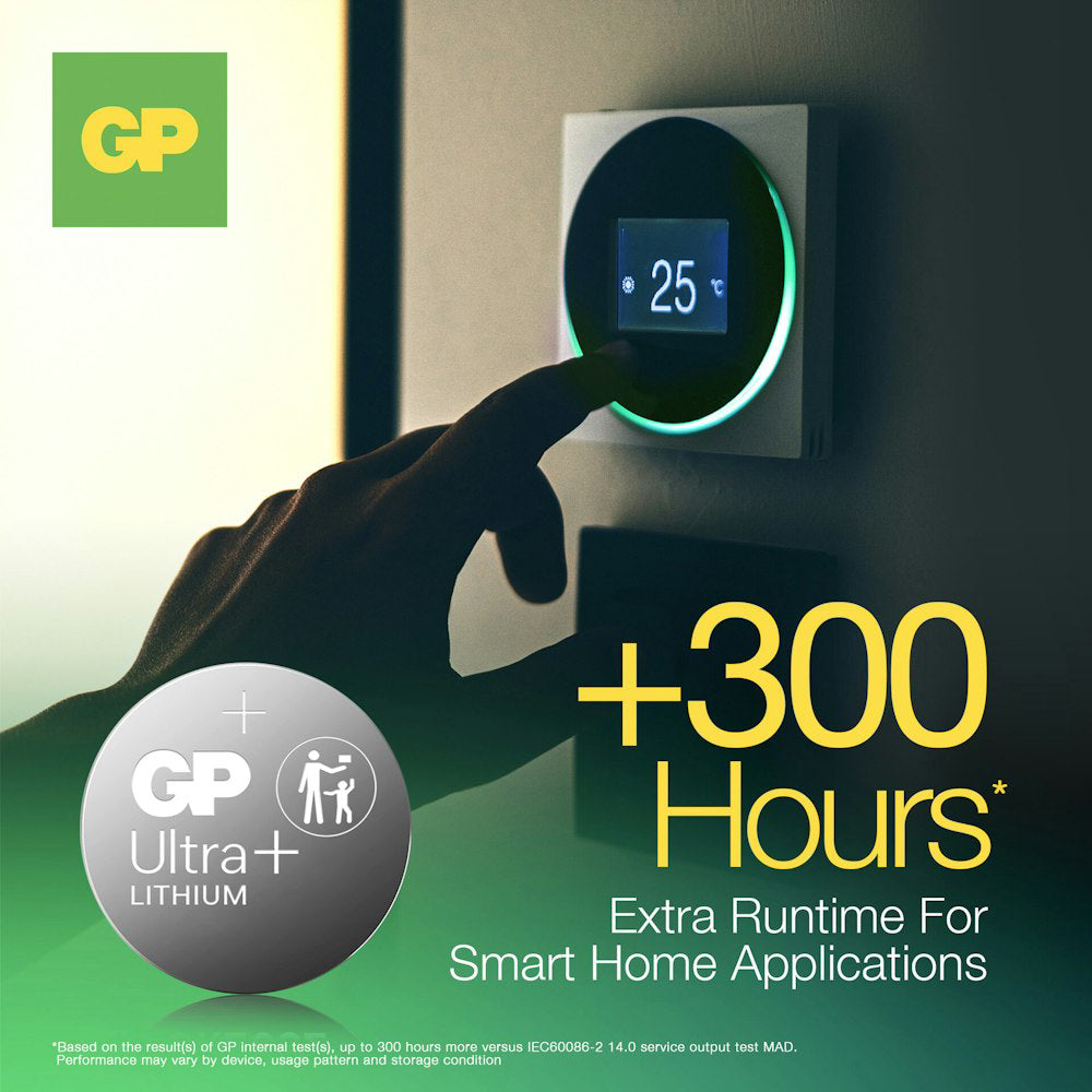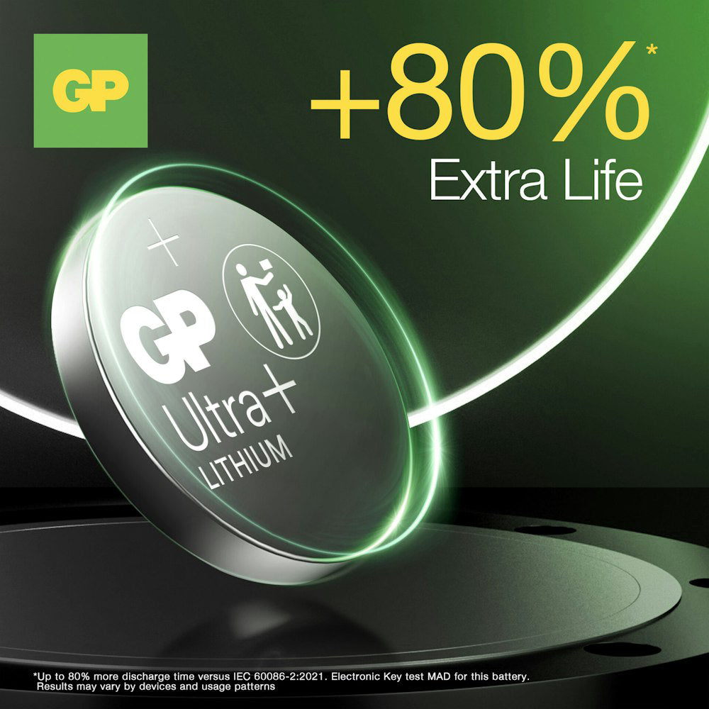 GP Ultra Plus Litium knappcellsbatterier CR2025 levererar kraft du kan lita på och är utrustade med patenterad Wavy Net-teknologi som förbättrar kraftstabiliteten.
