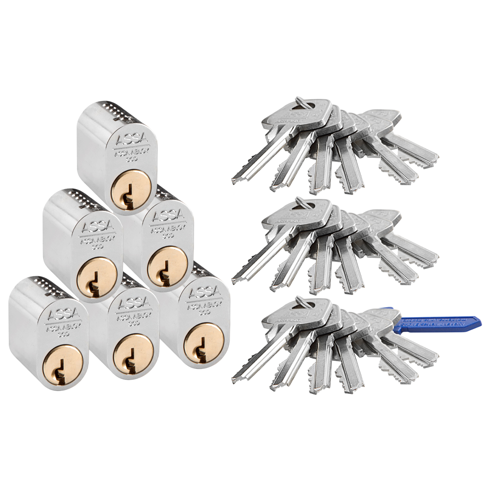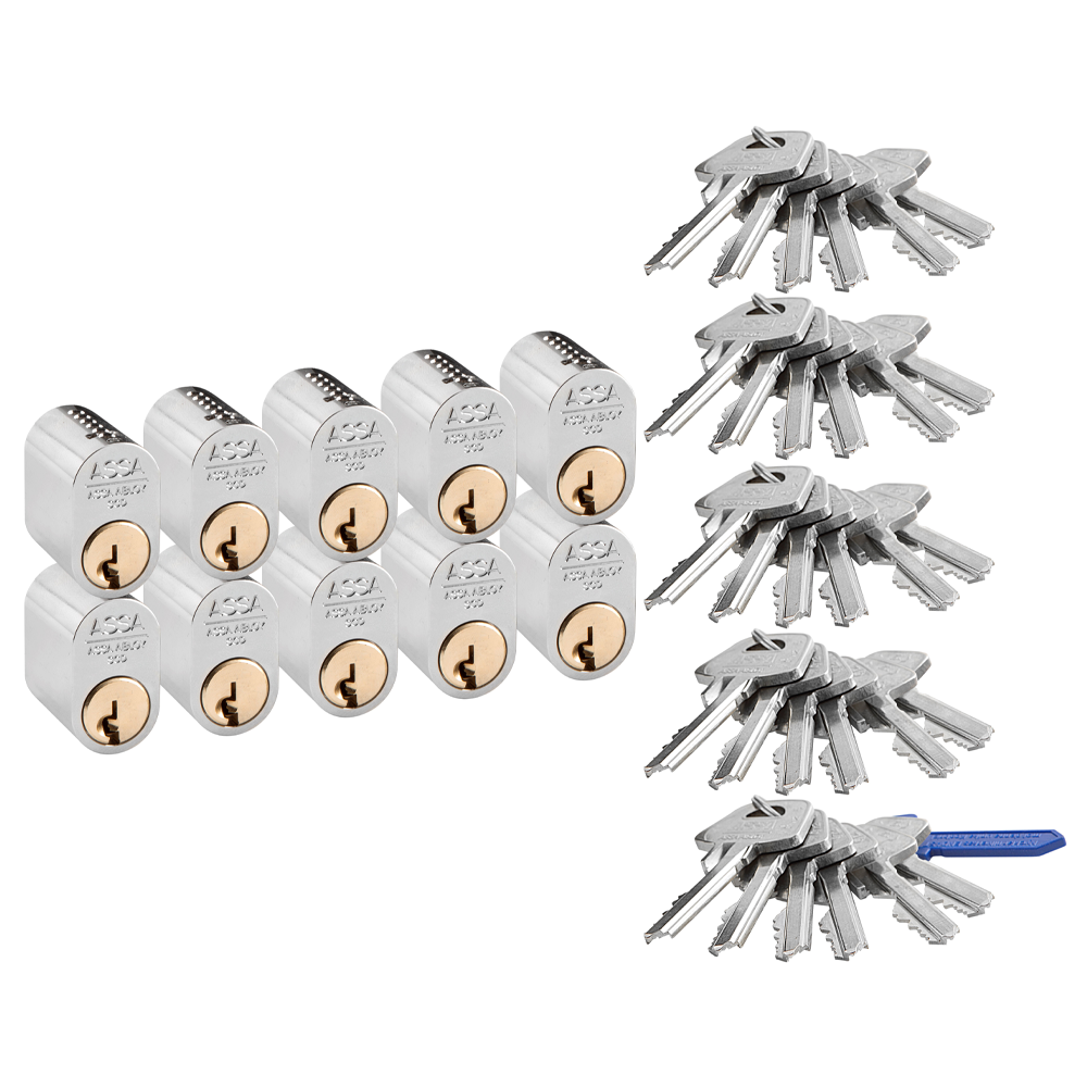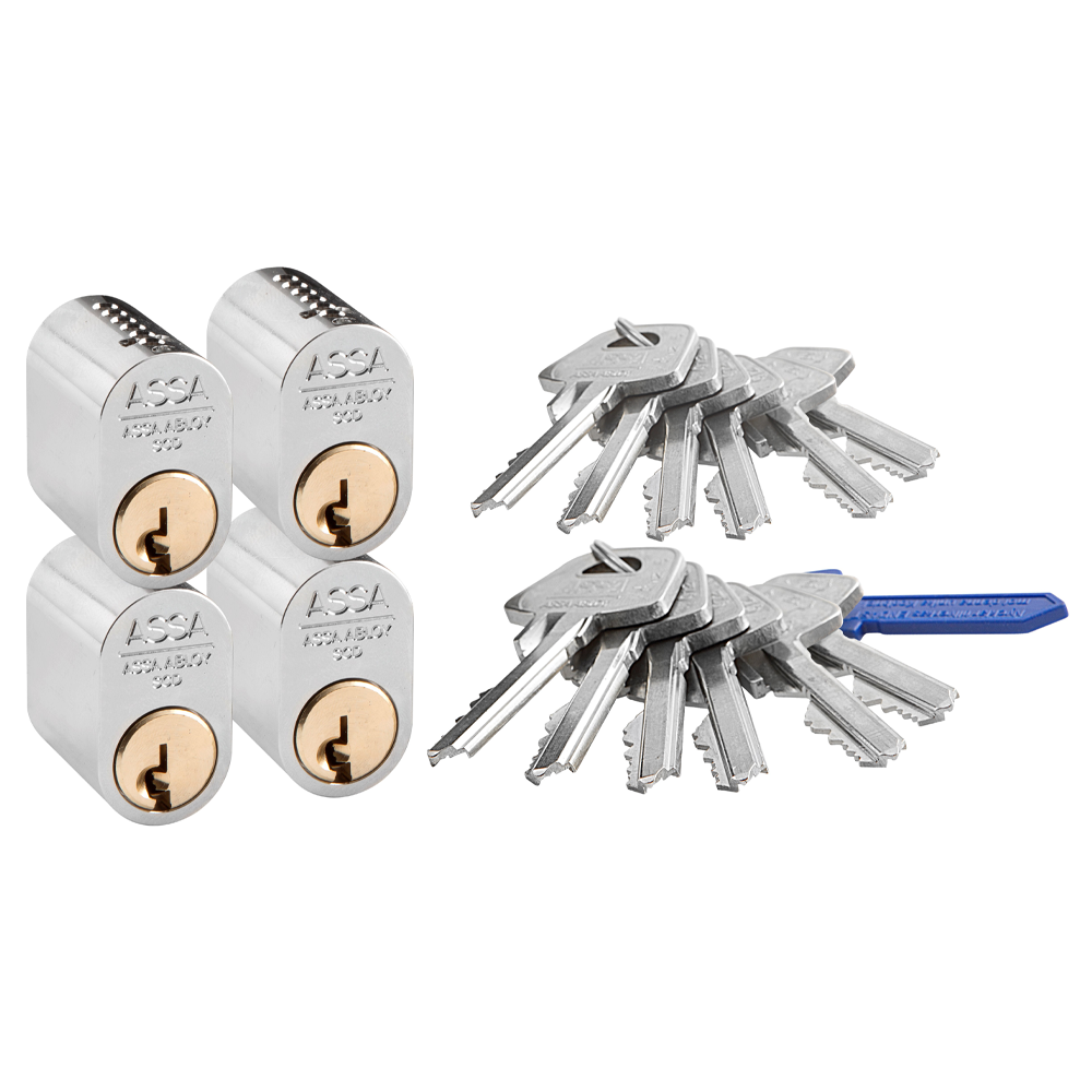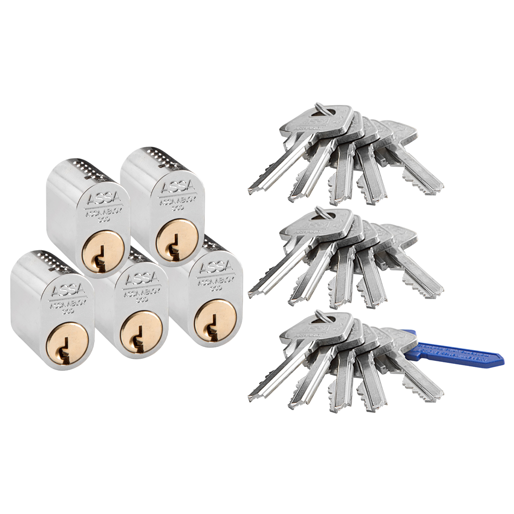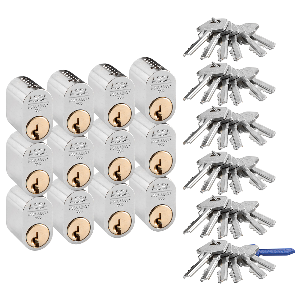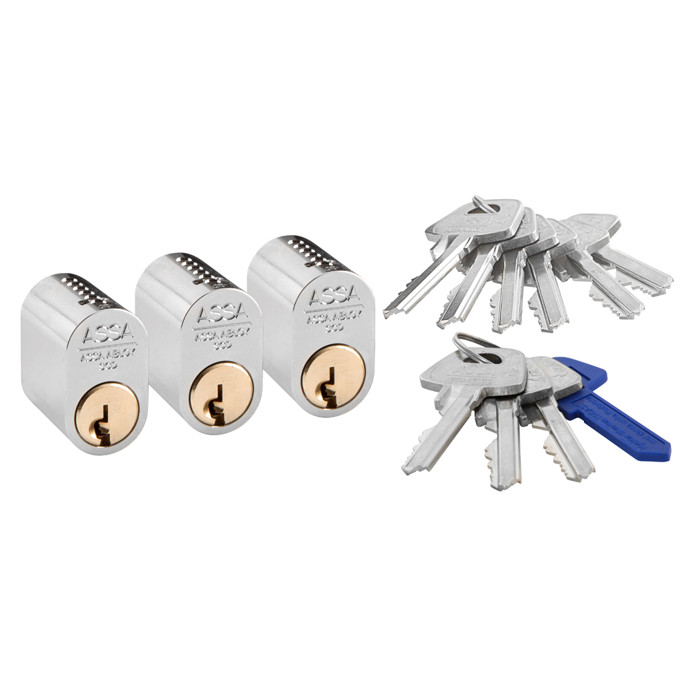 Lika låsning kombinationer: LL2 Cylindrar / 5 nycklar, LL2 Cylindrar / 6 nycklar, LL3 Cylindrar / 5 nycklar, LL3 Cylindrar / 9 nycklar, LL4 Cylindrar / 12 nycklar, LL5 Cylindrar / 15 nycklar, LL6 Cylindrar / 18 nycklar, LL10 Cylindrar / 30 nycklar, LL12 Cylindrar / 36 nycklar.
