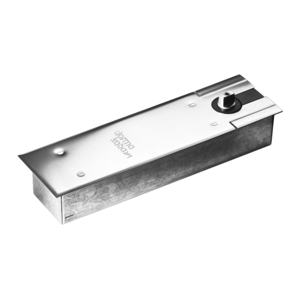 Dörrstängare i BTS 80 serien. Armsystemdörrstängare för infällt montage i golv, med kuggstångsteknik för svängdörrar. Dörrbredd EN 3 max 950mm. EN 4 max 1100mm. EN 6 max 1400mm. Ställbar stängningshastighet och fördröjd stängning/uppställning. Certifierad enligt EN 1154. Dörrbladsvikt max 300kg. Levereras med ingjutningslåda. Mått: Längd 341mm. Bredd 78mm. Djup 60mm.