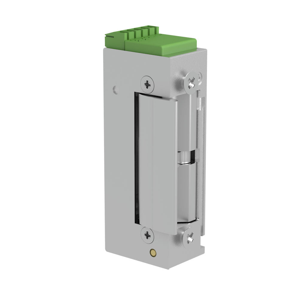Elslutbleck för dörrar med låga säkerhetskrav, brythållfasthet 600 kg. Omvänd funktion. Spänning 10-30 V DC med transientskydd. Kolvkontakt. Montagestolpar som passar är ROBUST serie S- och SA-.