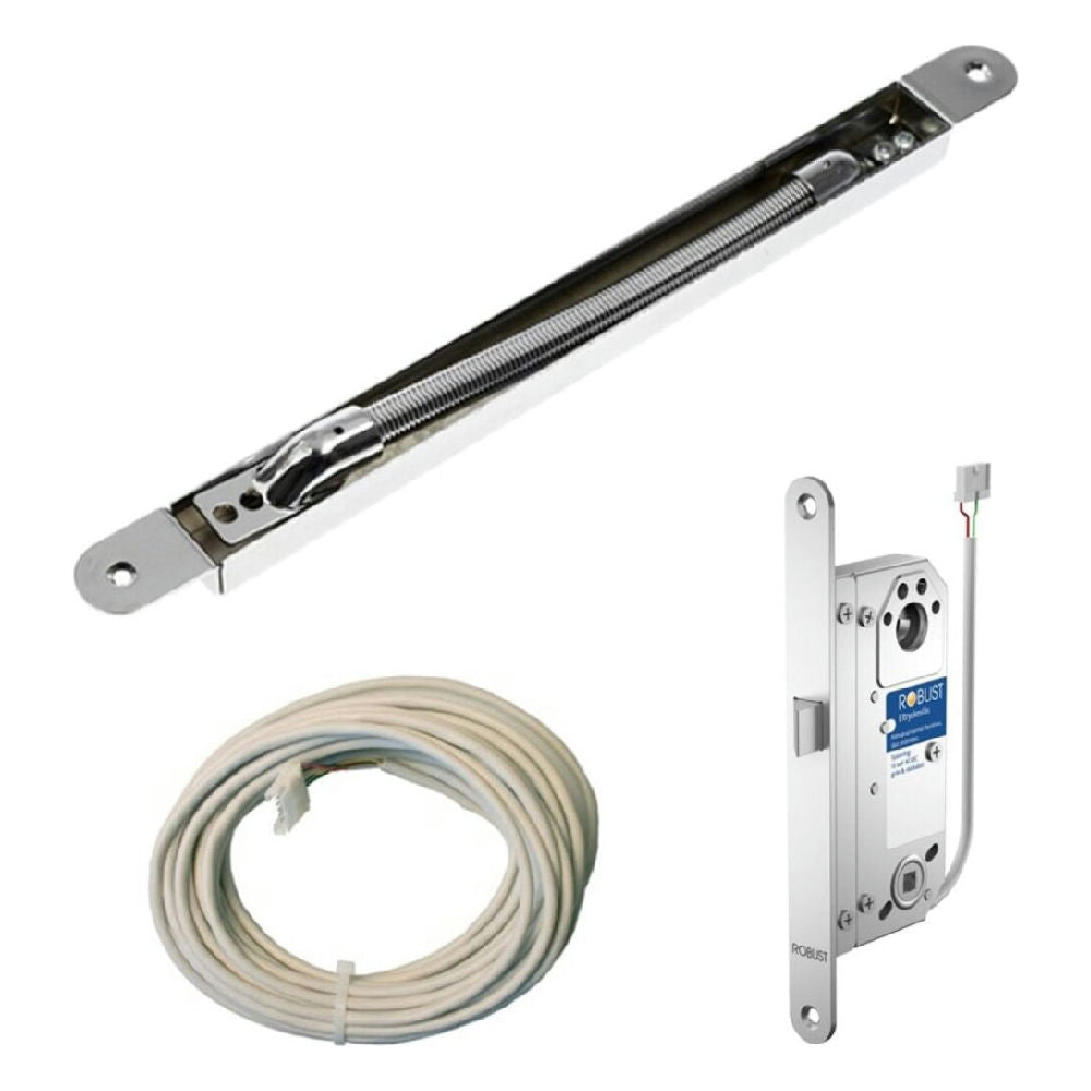 Sats i strukturform som består av eltryckeslås, 10 meter anslutningskabel och kabelöverföring.