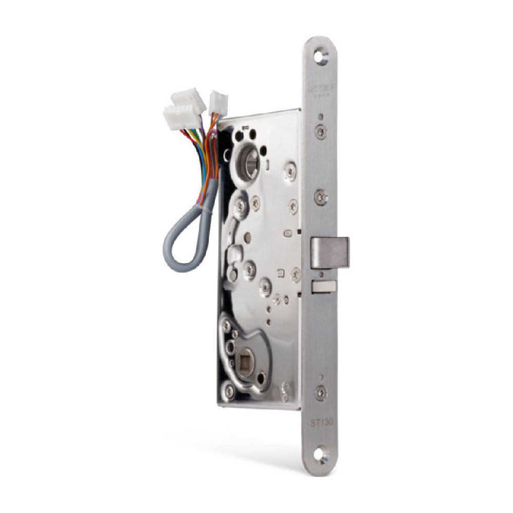 STEP 130 är ett eltryckeslås med splitfunktion och en automatikkolv som viker sig när dörren önskas öppnas med dörrautomatik eller draghandtag. När dörren öppnas med trycke fungerar STEP 130 precis som ett vanligt eltryckeslås med förreglad fallkolv.