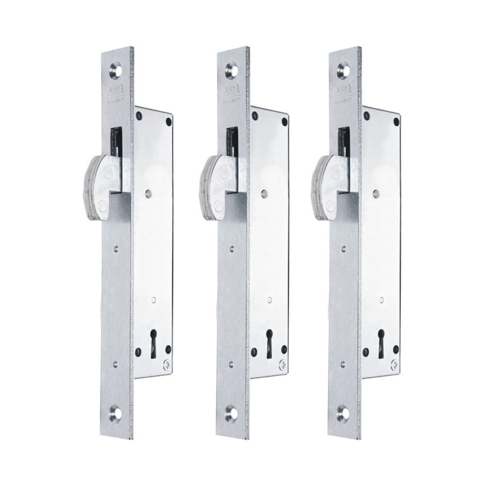 Hakregellås smalprofil med 9 tillhållare. Ger med ett varvs nyckelvridning full utlåsning av regeln, 22 mm, med förregling i utlåst läge. Härdade lameller i regeln försvårar genomsågning. Låset kan låsas från båda sidor. Lås i förzinkat stål. Levereras med 3 nycklar. Slutbleck 2221 passar.