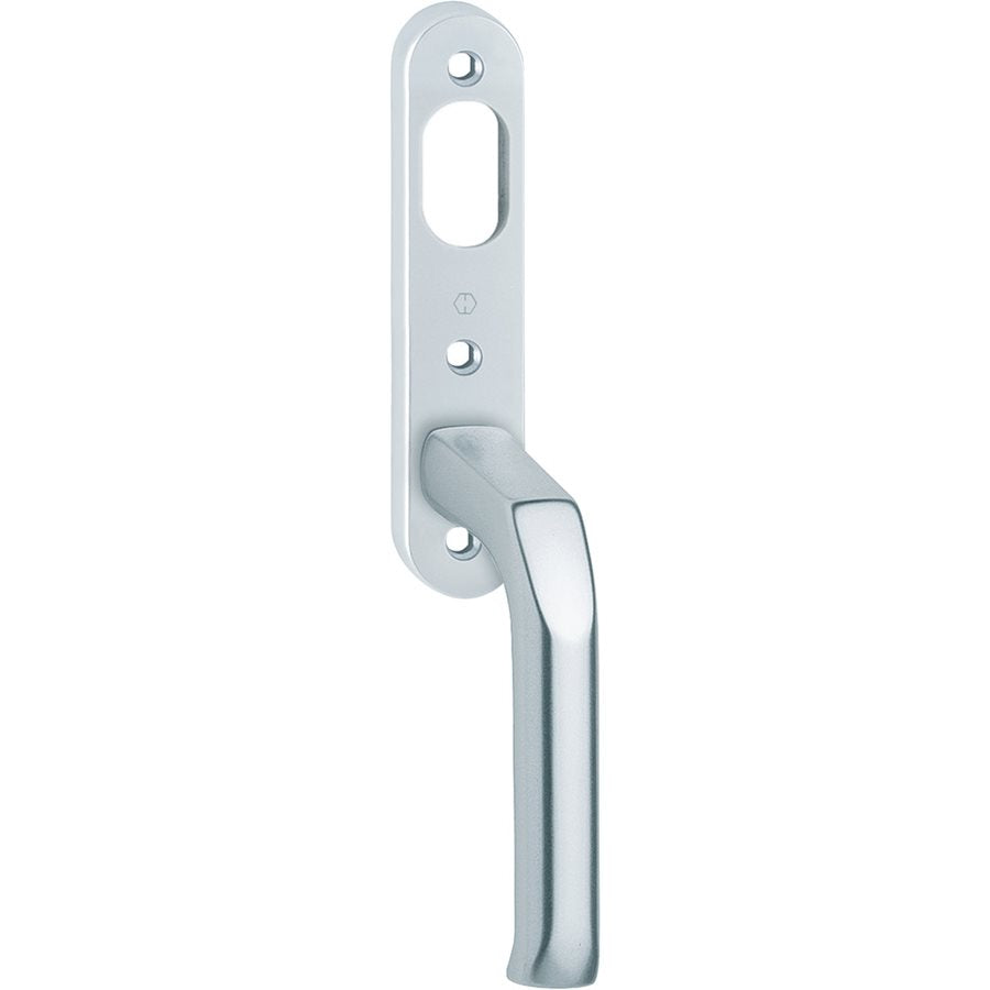 Handtag London med långskylt av aluminium till fönsterdörr med låsbar spanjolett. Rak med ovalt cylinderhål. Handtagssprint lös: 8x67mm. Uppfyller kraven på nickelavsättning - allergigodkänt.