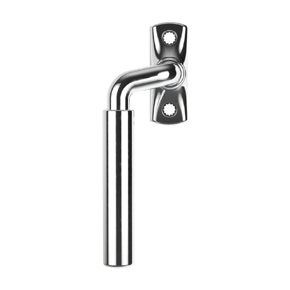 Prästö vänsterhängt i krom fönsterhandtag magnet WH-B 30L med bottenplatta 30 med styrtappar för rakt och snyggt montage och med ändlägen för “Kipp-Dreh”-fönster. Insticksmått i handtag för tryckespinne är 17mm.