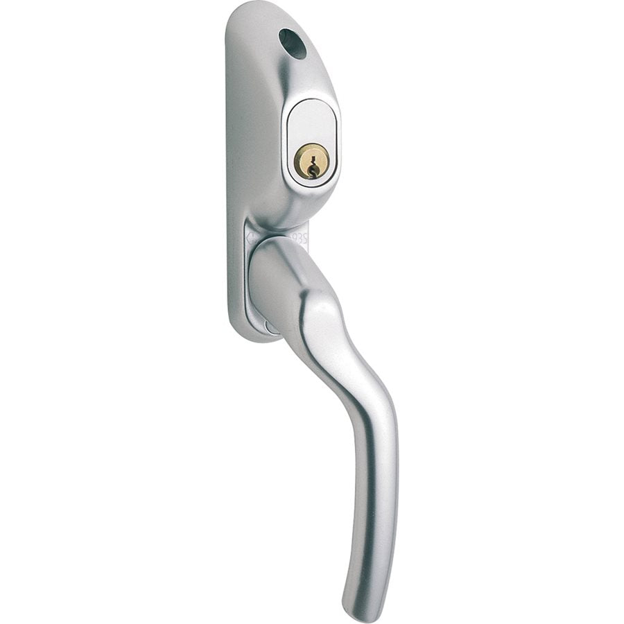 Fönsterhandtag av aluminium. I komination med 7-stifts ovalcylinder är det godkänt av Svensk Brand- och Säkerhetscertifiering AB, standard SS3620 Klass B. Höger. Handtagssprint: 67×8 mm. Uppfyller krav på nickelavsättning — allergigodkänt.