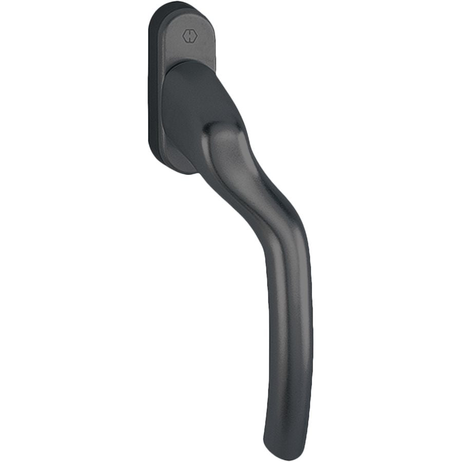 Fönsterhandtag Tokyo av aluminium, Höger ytbehandling alu svart matt, med distinkta 90° indelningar, 10 mm styrtappar, handtagssprint: 7x63 mm. Uppfyller krav på nickelallergi - godkänt för allergiker.