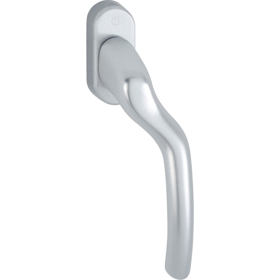 HOPPE Fönsterhandtag Tokyo av aluminium, höger, ytbehandling aluminium silver F1, med distinkta 90° indelningar, 10 mm styrtappar. Handtagssprint: 7x93 mm. Uppfyller krav på nickelallergi - godkänt för allergiker.