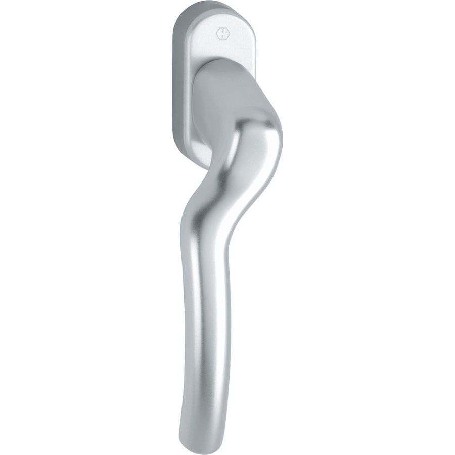 HOPPE Fönsterhandtag Tokyo av aluminium, vänster, ytbehandling aluminium silver F1, med distinkta 90° indelningar, 10 mm styrtappar. Handtagssprint: 7x93 mm. Uppfyller krav på nickelallergi - godkänt för allergiker.
