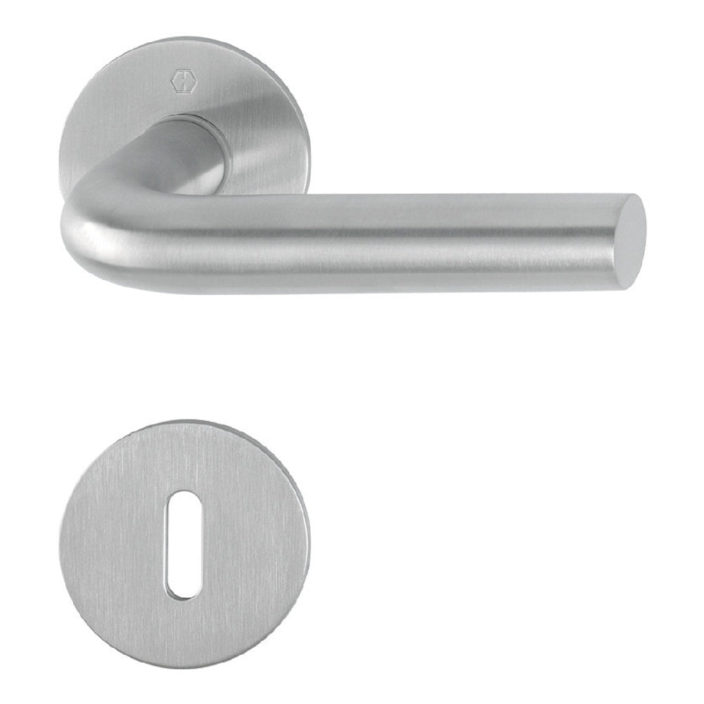 HOPPE komplett set för innerdörr, serie Bonn, för nyckelskylt. Rostfritt F69. Passar endast för låskista typ 2014. Rosetter med dubbelverkande returfjäder och Kvick-i-Sprint PLUS faststättning, montage utan verktyg. Dörrtjocklek 35-45 mm, 10 års funktionsgaranti.