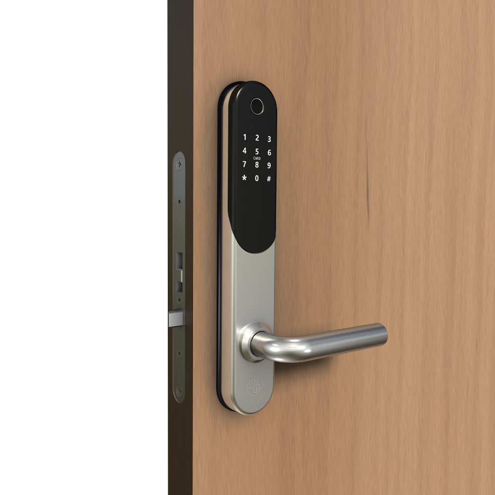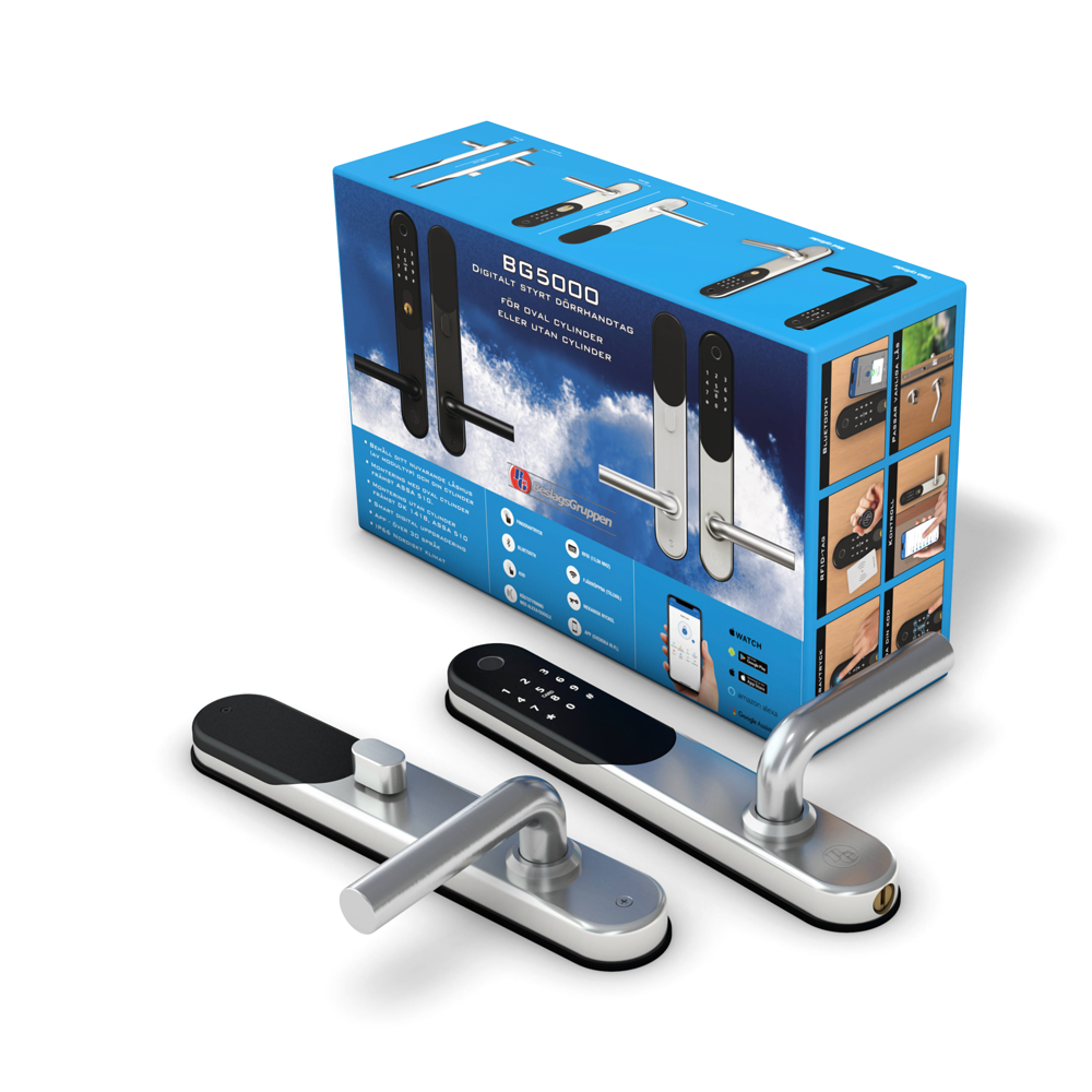 Låset kan öppnas med fingeravtryck, kod, nyckeltag eller smartphone. Levereras med nödnyckel.