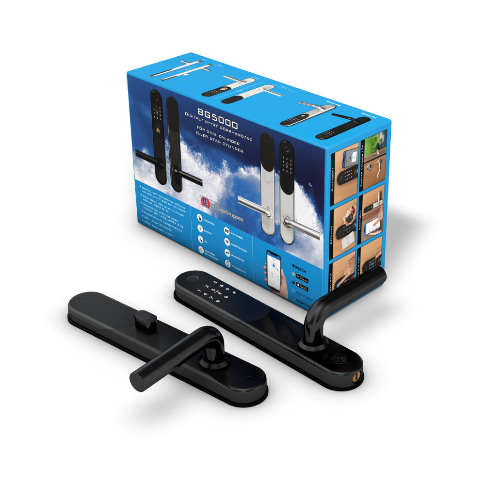 Låset kan öppnas med fingeravtryck, kod, nyckeltag eller smartphone. Levereras med nödnyckel.
