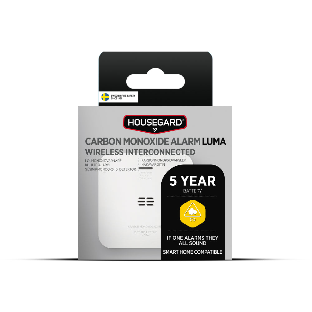 Larmar en, larmar alla – på så vis blir du varnad var du än befinner dig, kan kopplas samman trådlöst med upp till 40 andra varnare i vår LUMA-serie. LUMA kolmonoxidvarnare reagerar snabbt vid farliga nivåer av kolmonoxid och rekommenderas särskilt för rum med bränsledrivna värmekällor eller anordningar. Genom Luma Hub (köps separat) gör du din varnare smart och kan t.ex få notiser i din telefon.
