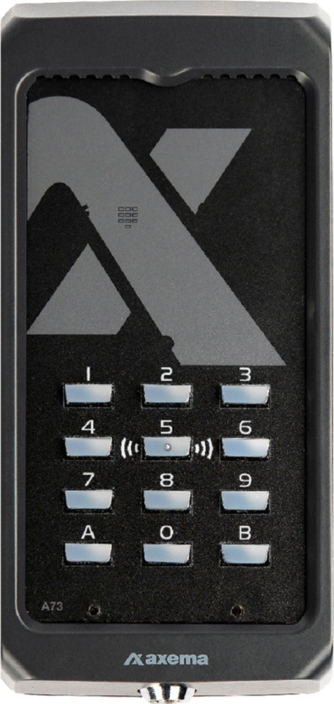 VAKA-läsare (RFID) med knappsats och som kopplas till dörrcentral B28 eller B18 (max 150 m). Robust och motståndskraftig metallkapsling för utomhusbruk. Användarvänlig läsare med avläsning för passerbrickor (4 cm) eller radionyckel RN18 (50 m). Knappsats som användas för personlig kod (PIN) eller för sk. gruppkod. Den inbyggda högtalaren ger ljudindikeringar vid knapptryckningar, varningar, larm (sabotage mm.) samt talmeddelanden.