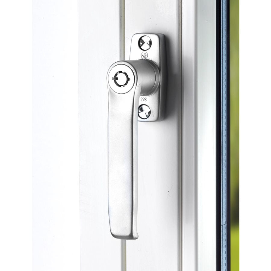 Säkerhetshandtag rekommenderat för innersida. Låsbart med rörformig nyckel som kan tas ur i såväl låst som olåst läge. Utökad säkerhet med inbyggd låscylinder som har fjädrande låsmekanism, vilket minskar risken att glömma kvar nyckeln i låset. Levereras med två nycklar och skruv för fastsättning. Låscylindern kan bytas när handtaget är monterat. Uppfyller kraven enl. SS3620 klass A + B. Provat av SSF och certifierat av SBSC. 8 mm sprint.