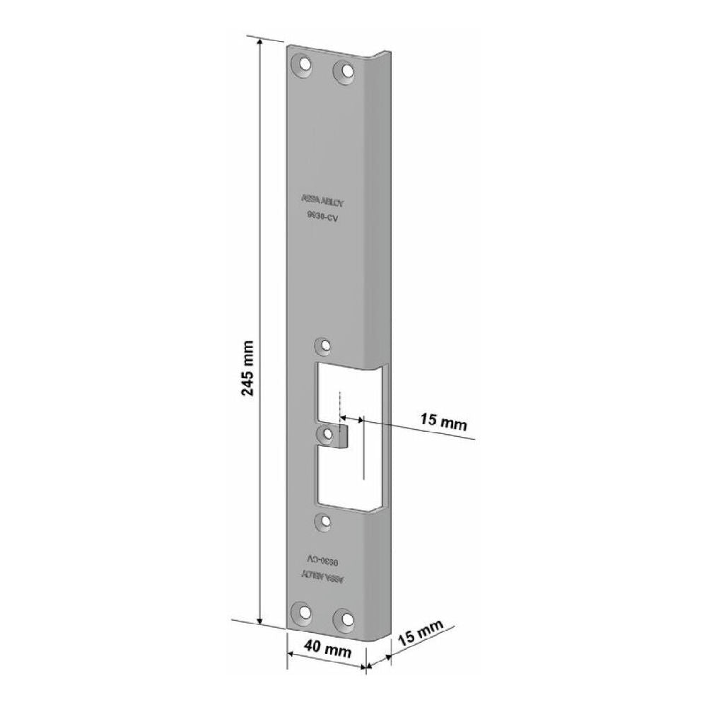 Monteringsstolpe till elslutbleck ASSA ABLOY 992. Vänster, plösmått 15 mm.