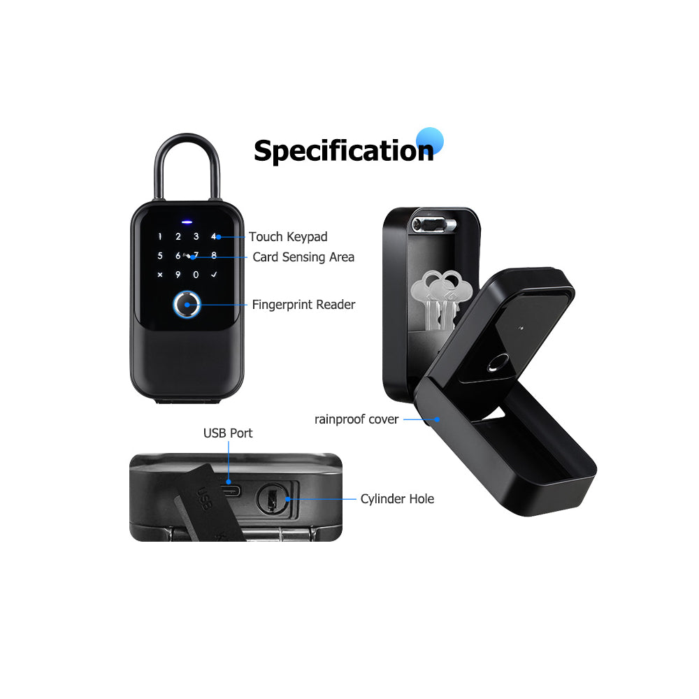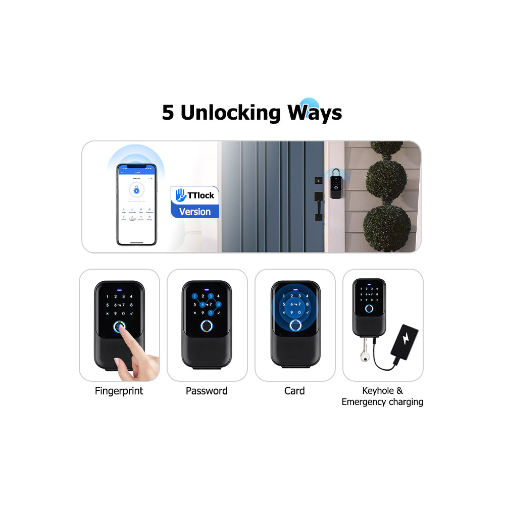 - Öppna med: fingeravtryck, app, kod, nyckelbricka (2 st medföljer), mekanisk nyckel (2 st medföljer) eller från distans (med gateway)