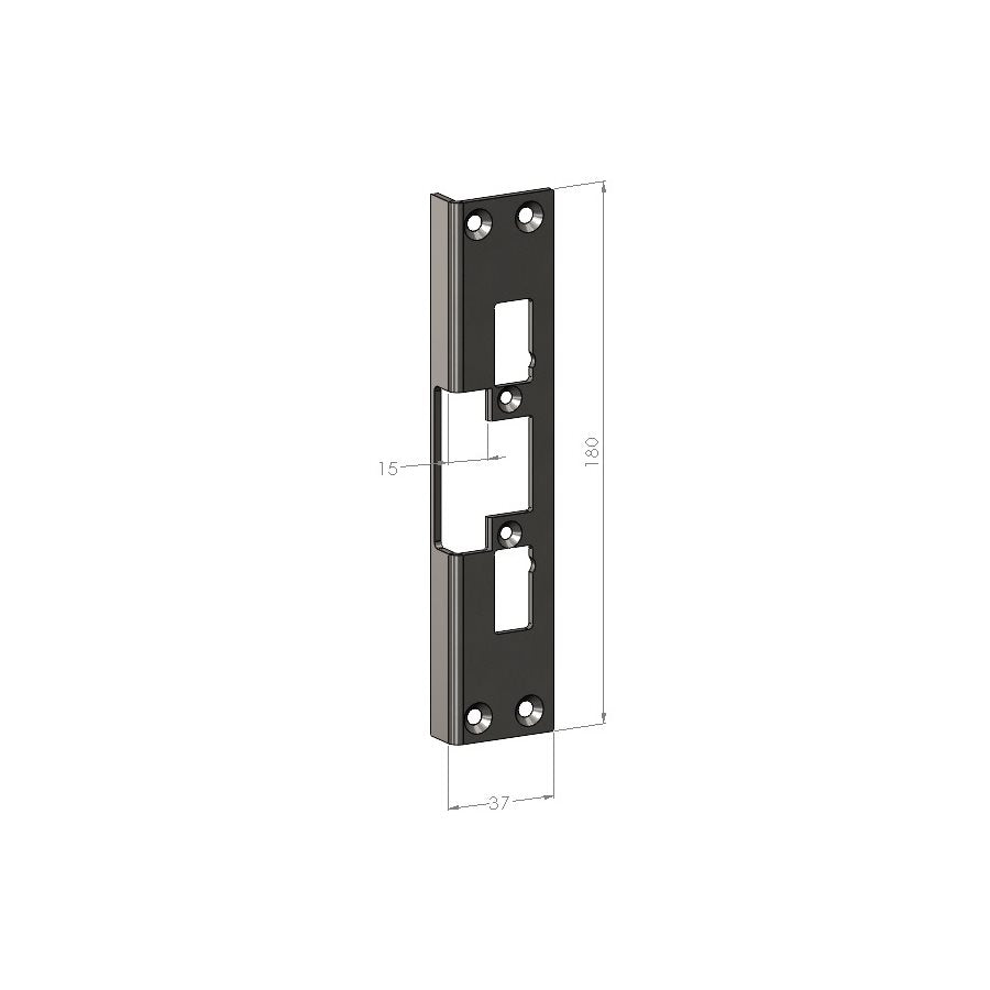 Vinklad monteringsstolpe i rostfritt stål för SAFETRON elslutbleck i standardserien: ES17 / ES19. Anpassad för trä- och metallkarmar, används tillsammans med dubbel- eller enkelfallås av typen connect/evolution eller modul.