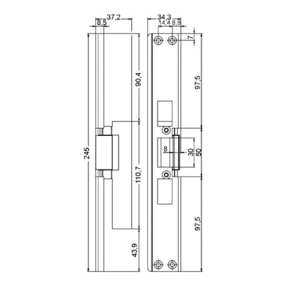 Standard monteringsstolpe till Solid elslutbleck avsett för Schuco profilsystem Royal S65 och Royal S50N.