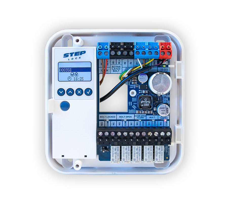Styrenheten ST300C hanterar ett motorlås för koppling till passersystem, larm och annan väsentlig funktion.