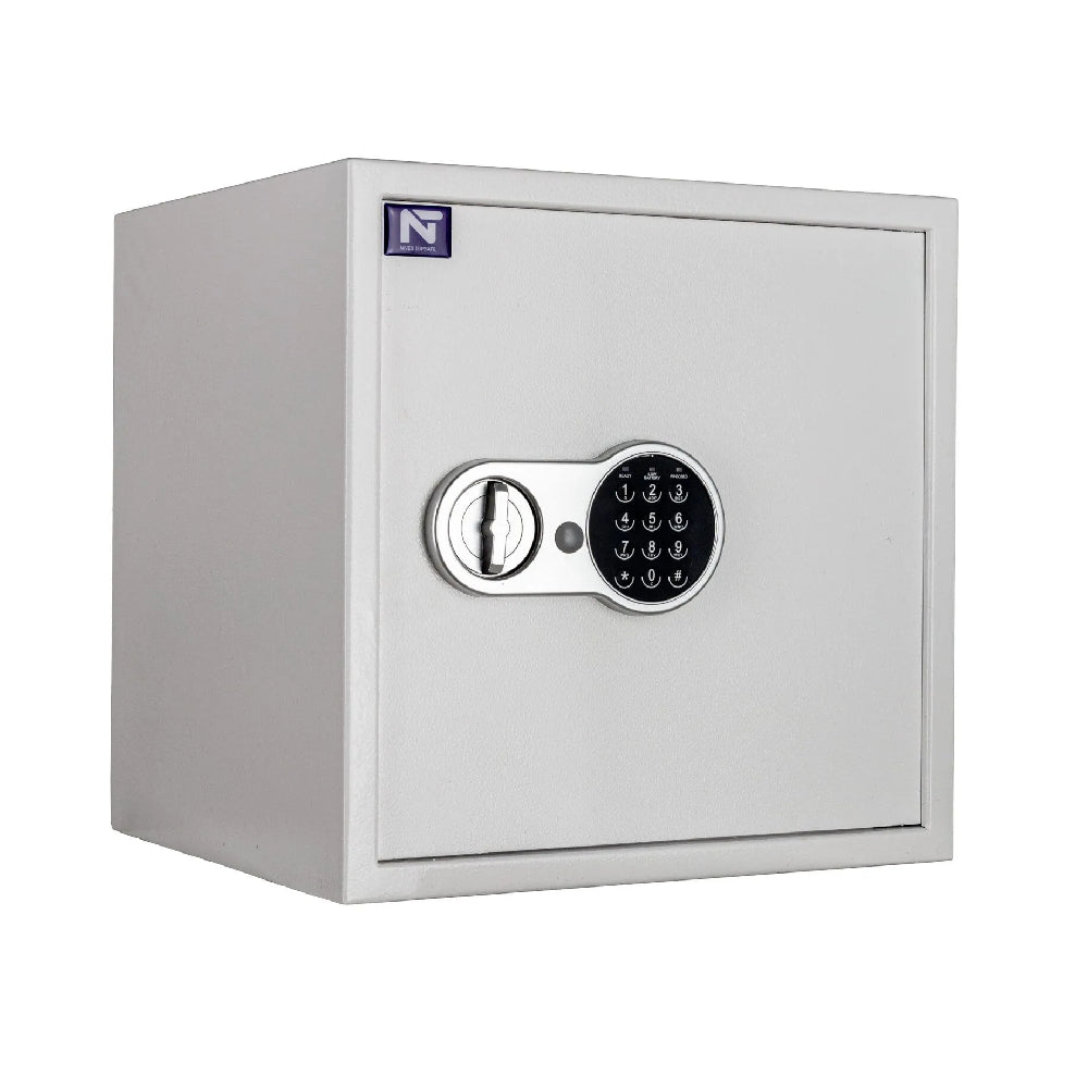 T40 - Stöldskyddandeskåp är lämpade för att skydda stöldbegärlig egendom i hemmet, sommarstugan, båten, husvagnen eller på företaget. Väggarna i T40 består av 2mm slitstark stålplåt. Dörren består av 3mm stålplåt och där sitter 2st 20mm låskolvar som hjälper till att hålla obehöriga borta. T40 är ett mellan stort skåp som är utrustat med 1st flyttbar hylla samt med ett batteridrivet elektroniskt kodlås och nödöppningsnyckel ifall koden skulle komma bort. Skåpet har förankringshål i både bakre vägg och botten.