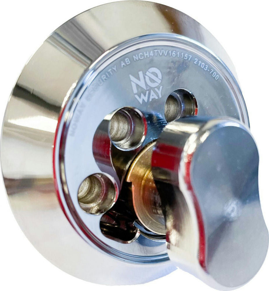 Noway Securitys vredcylinder ger en tydlig och distinkt manövrering för lås- och upplåsning av låshuset. Konstruktionen är även utformad med en 60° vridfunktion som gör det lättare att öppna och stänga. Finns i fyra olika ytbehandlingar: blank krom, mattborstad krom, blank förgylld, mattborstad förgylld.